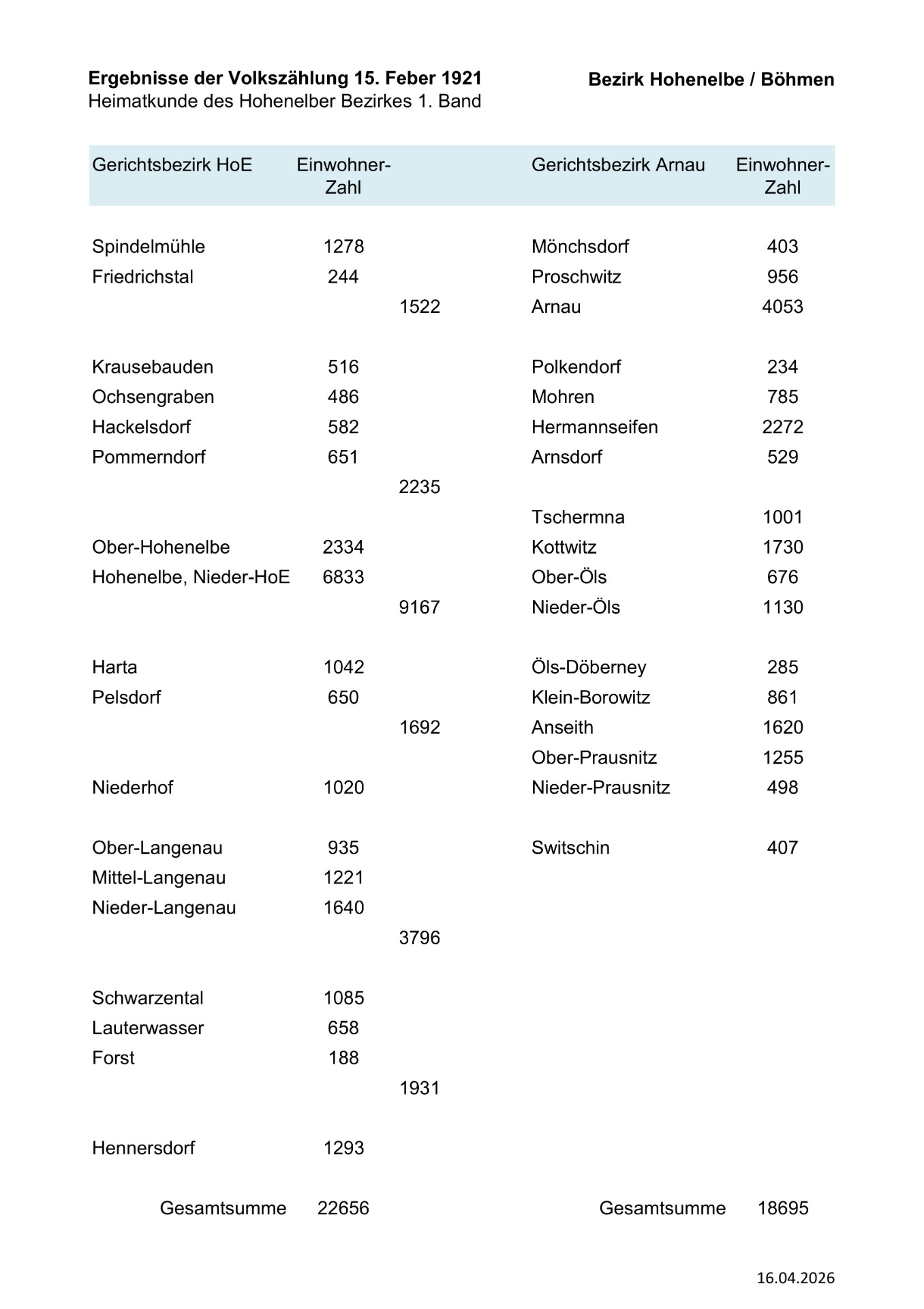 V roce 1921 proběhlo v Krkonoších sčítání lidu, které vedlo k následujícím údajům o počtu obyvatel horského města Vrchlabí: